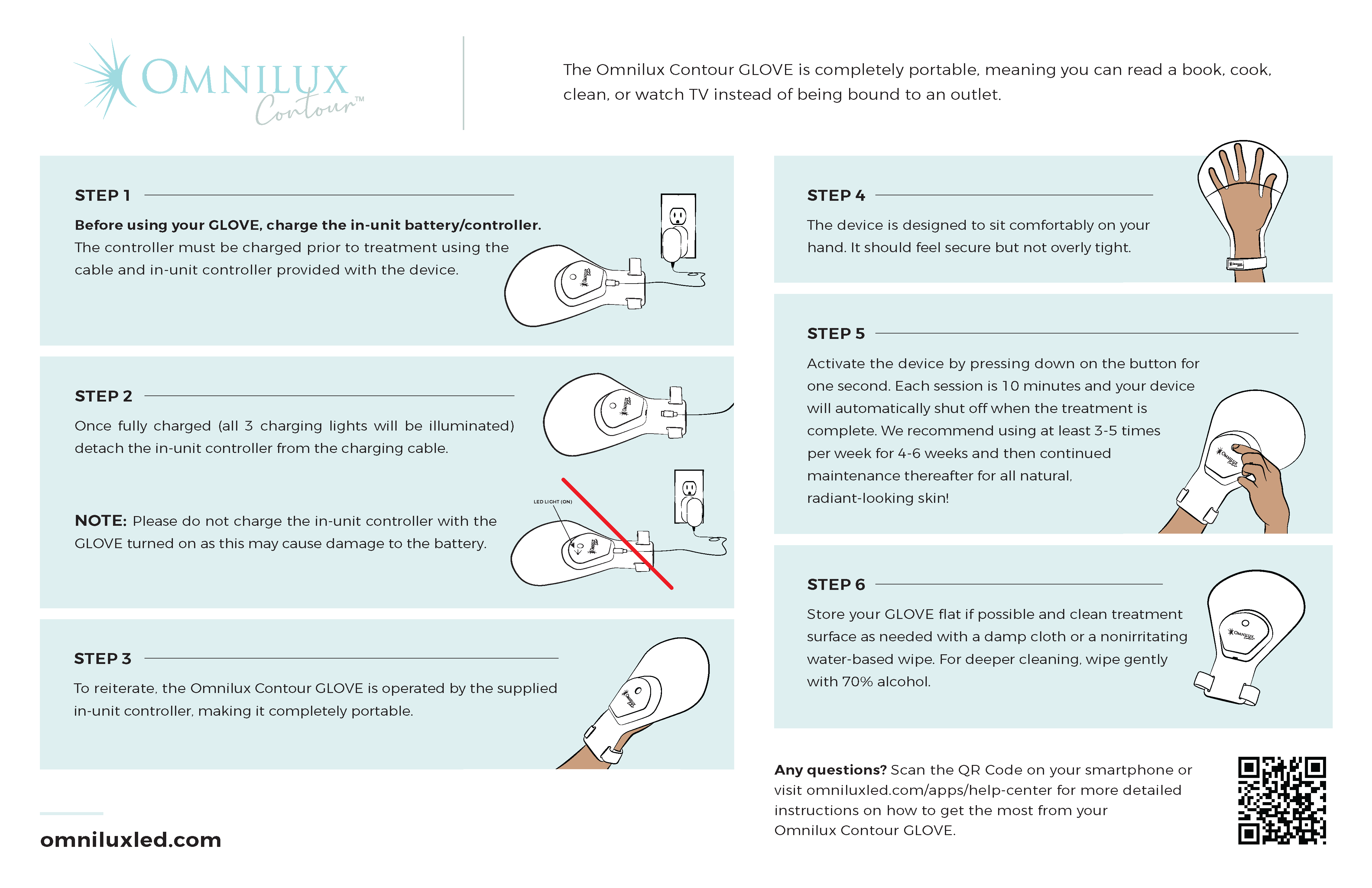 Before using the Omnilux Contour™ Hand you must carry out a sensitization test (see How To Use Section, below). DO NOT proceed to use the Omnilux Contour™ Hand, if the skin sensitivity test demonstrates you are sensitive to Omnilux Contour™ Hand.